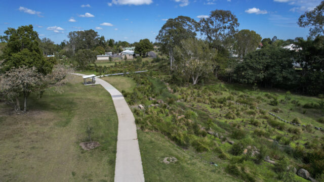 This was integrated with new park facilities, nature play infrastructure, and active transport bikeways.