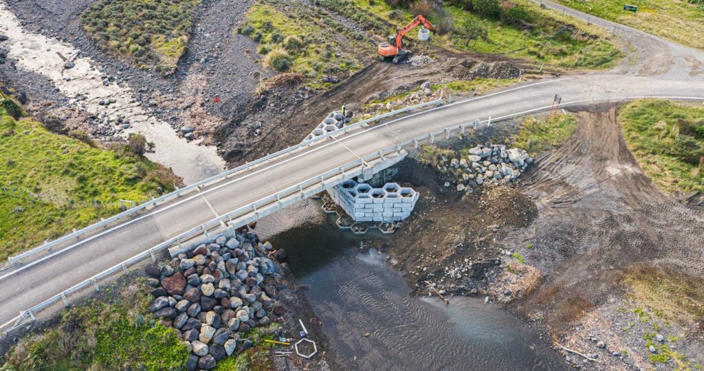 The solution was the hexagonal or honeycomb shaped interlocking Ecoreef concrete pods which now protect Wairarapa’s South Coast from the sea. The pods have been installed on nine non-coastal projects for Masterton District Council, from dropouts to bridge abutment repairs in a project costing NZ$1.9m.