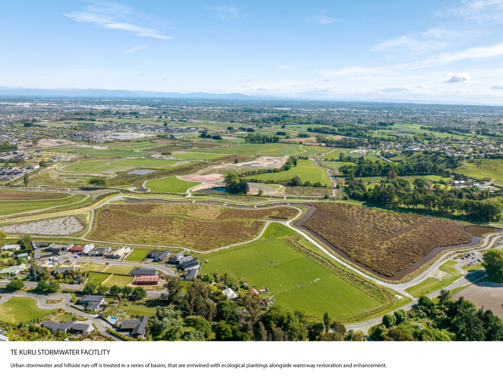 Te Kuru is a transformational redevelopment of a 110-hectare area in southwest Christchurch, formerly a raupō wetland drained for agricultural purposes. This project aims to establish a multi-value stormwater management area that not only addresses flood risks but also treats stormwater runoff effectively.